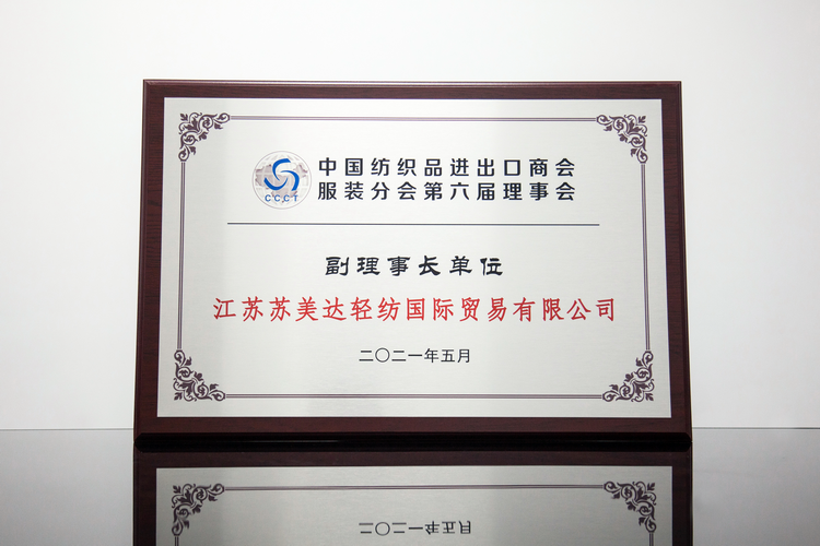 苏美达轻纺获中国纺织品进出口商会服装分会授牌