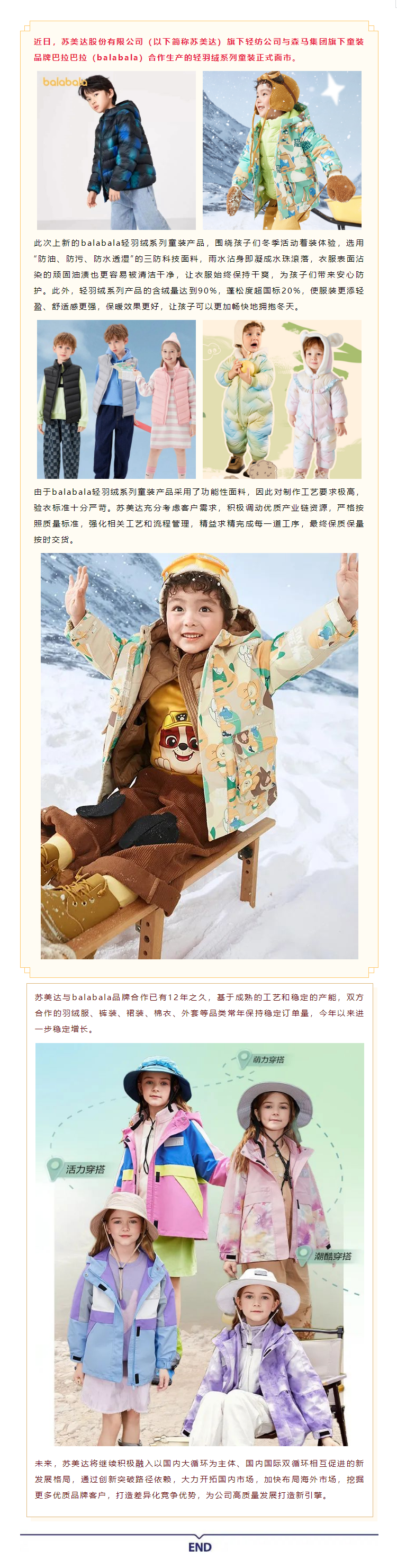 苏美达轻纺 x 巴拉巴拉儿童冬装舒适登场