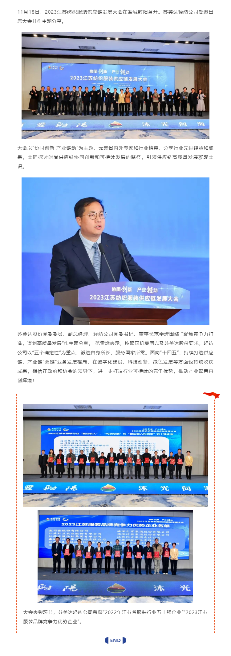 苏美达轻纺受邀出席2023江苏纺织服装供应链发展大会